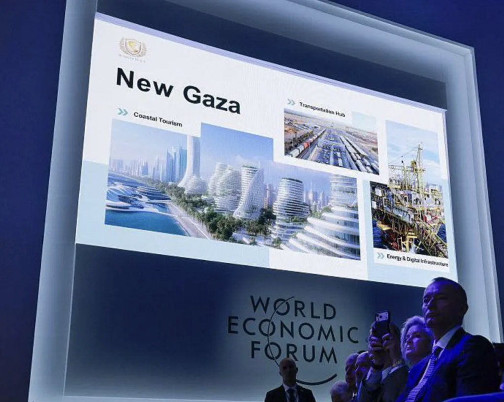 След като бяха представени „висшите лидери“ на Тръмп, неговият зет, Джаред Къшнър разкри планът на Тръмп за развитие на „Нова Газа“ на стойност 30 милиарда долара. Планът включва брегова линия, застроена с небостъргачи.