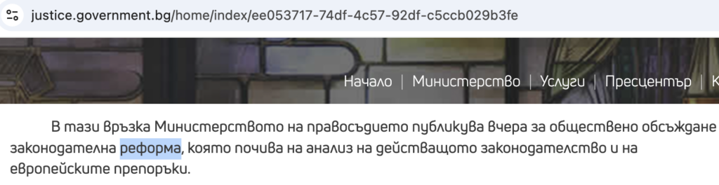 Въз основа на тези данни министърът в оставка Георги Георгиев е решил да инициира „реформа“, която обаче започва и свършва с промени в Наказателния кодекс. На сайта на институцията той е цитиран да заявява следното: „За мен тези престъпления срещу деца са крайна форма на жестокост, извратеност и безнравственост, която трябва да срещне категоричен отпор от държавата и обществото.“ Вчера Министерството на правосъдието публикува за обществено обсъждане законодателна реформа, което ще се проведе до 17.02.2026 г.